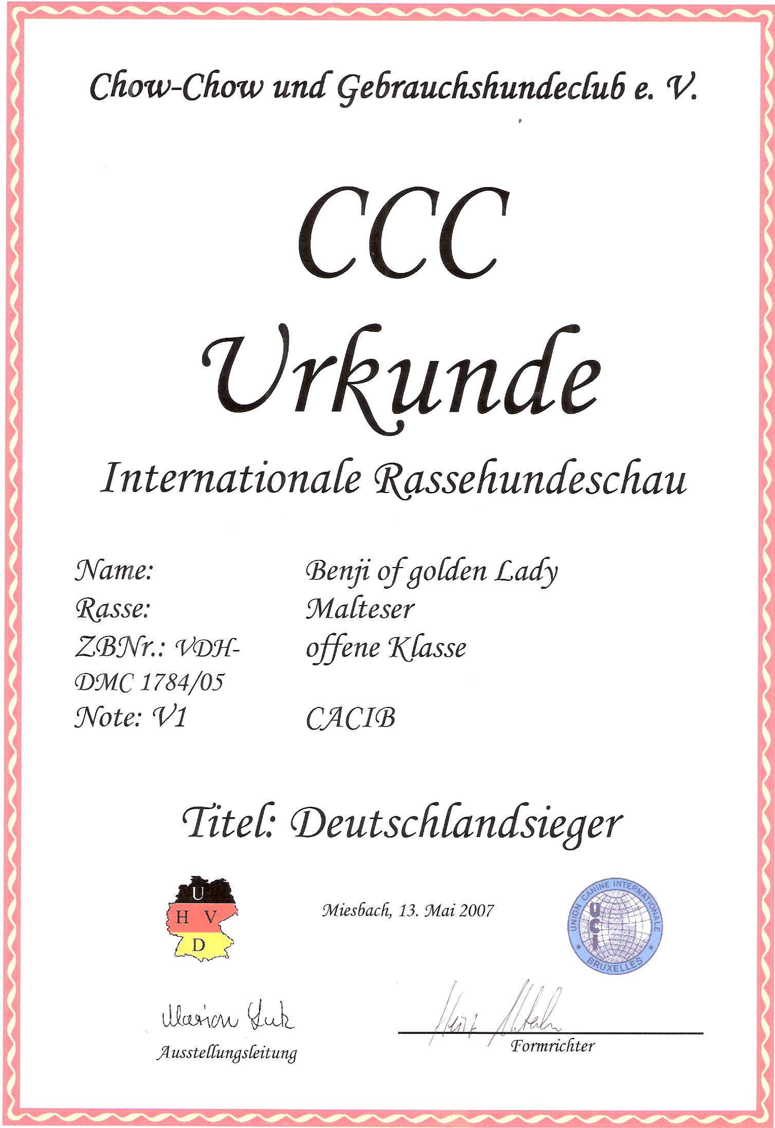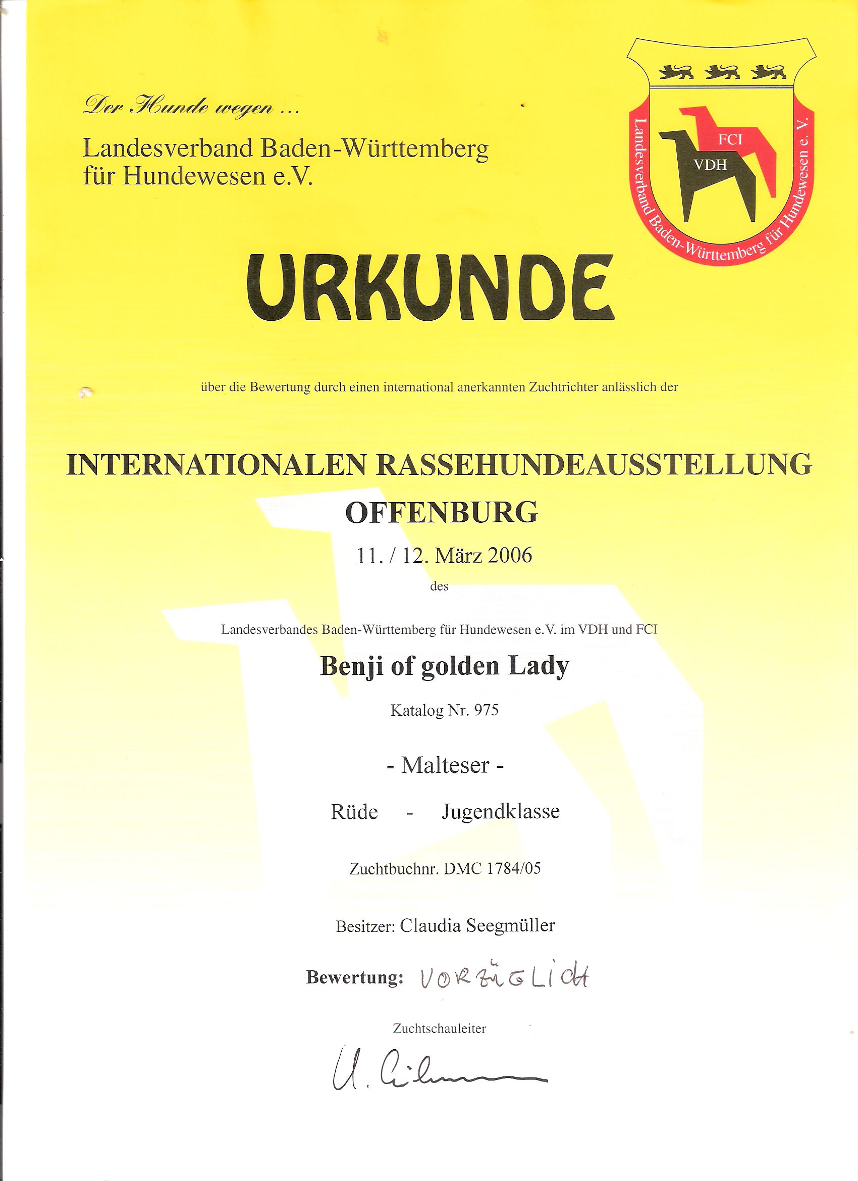 Auszeichnungen von Papa Benji aus früheren Jahren.
